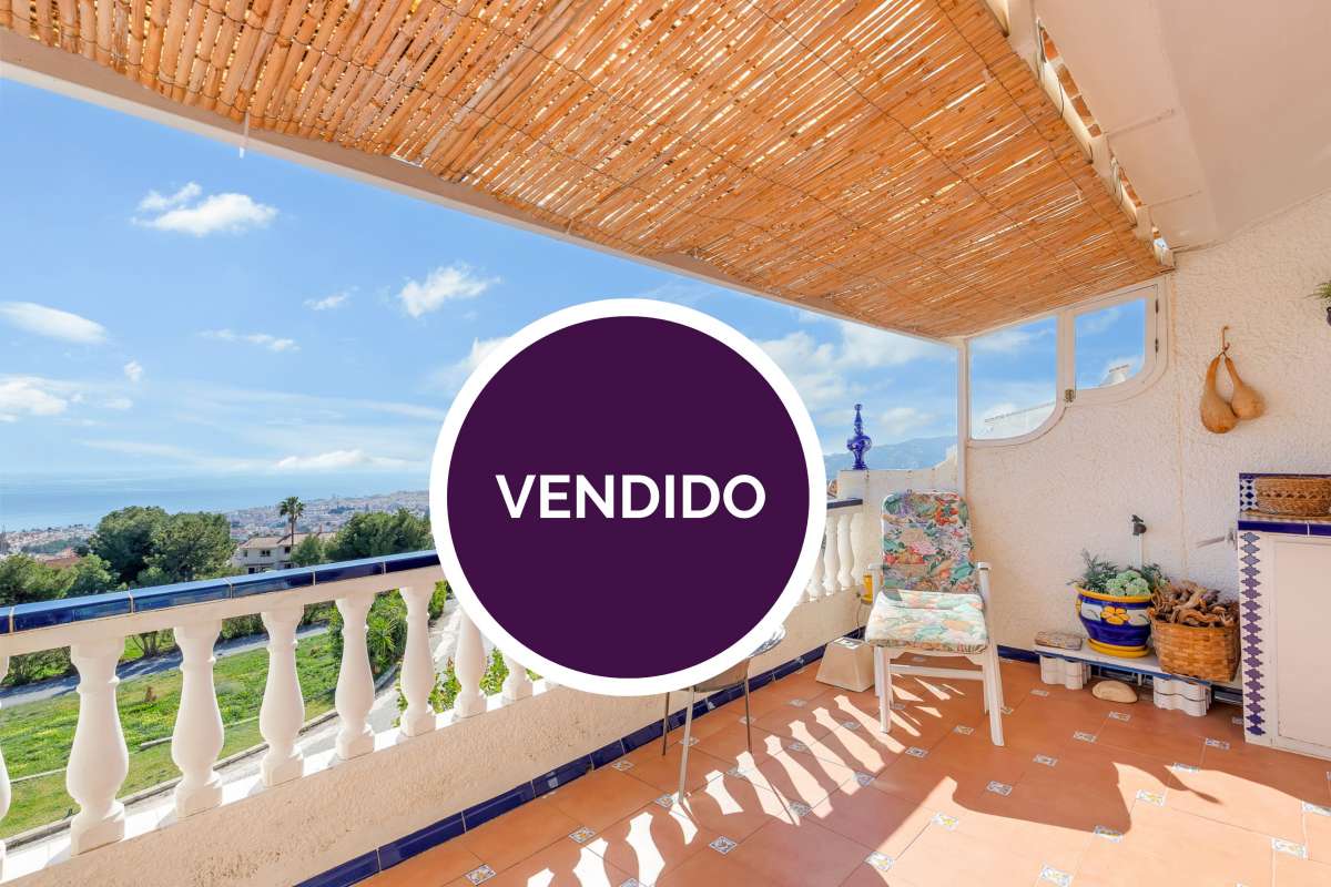 This south facing corner townhouse boasts stunning panoramic views to Nerja with the sea in the distance from its covered terraces, private parking with small private garden and a guest studio with independent access in the lower part of the property.