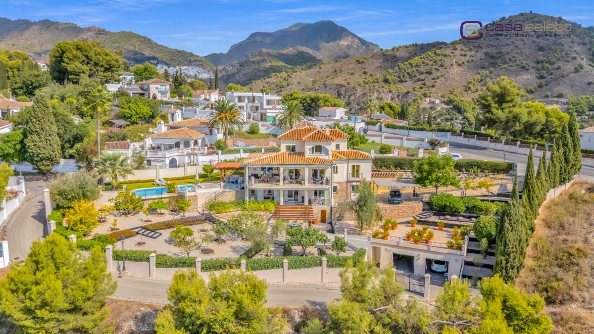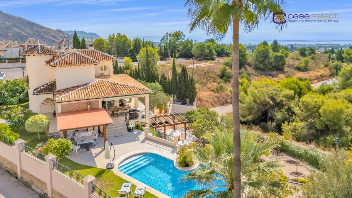 In the prestigious Cortijo San Rafael area, nestled between Frigiliana and Nerja, lies this stunning villa that blends exclusivity, comfort, and breathtaking panoramic views. Its location is truly privileged: a peaceful enclave surrounded by nature, yet only a short drive from Frigiliana, one of Andalusia’s most beautiful whitewashed villages, and Nerja, with its golden beaches, vibrant restaurants, the iconic Balcón de Europa, and the famous Nerja Caves, declared a Site of Cultural Interest.